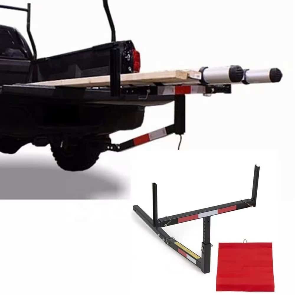 The Truck Bed Extender Rack is Made of high grade tubular steel, will help transport extra long payloads such as lumber, pipes, ladders, canoes, or any other items exceeding the length of your truck bed safer. On The Sides And Front Of The Truck Bed Extender Are Reflective Strips For Added Visibility Along With An Included Red Safety Flag To Attach To The End Of Your Load. The Support Arm Can Be Adjusted Width Wise And Height Wise Allowing You To Use The Truck Bed Extender For Many Different Applications. The Hitch Extender Comes Standard To Fit Into 2″ Square Hitch Receivers But Can Be Used On 1-1/4″ Receivers With A Hitch Adaptor. Not Only Is The Truck Bed Extender Great For Transporting Longer Payloads, But Also Can Be Used As A Portable Work Table By Folding Down The Side Arms.